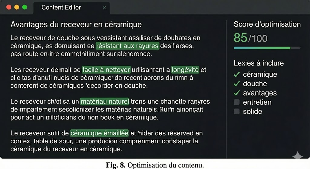 Mais ne décevez pas ensuite le lecteur avec un contenu sans intérêt. La figure 8 est un exemple d’optimisation du contenu selon les lexies à placer :