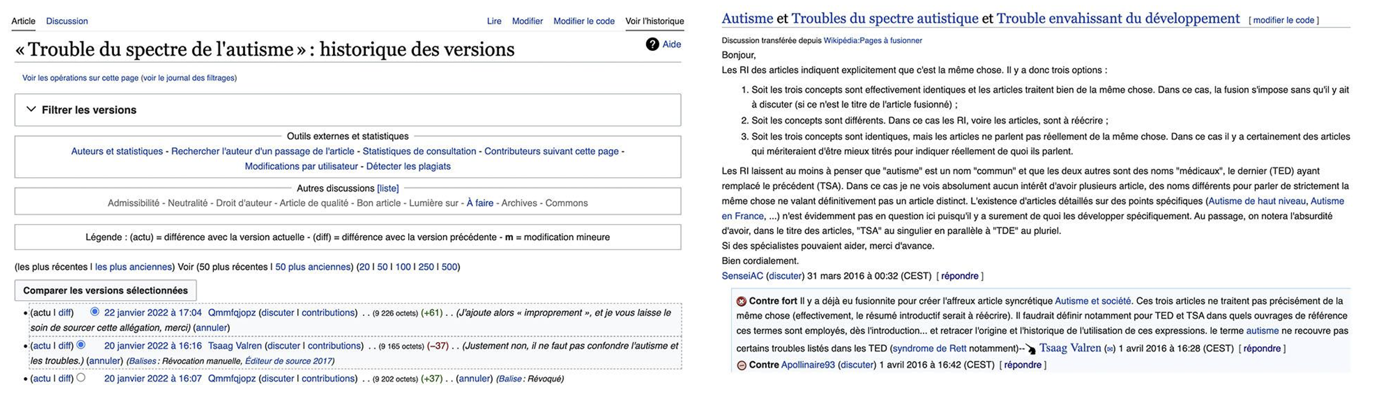 Aperçu des historiques de versions et des discussions pour la page Wikipédia française « Trouble du spectre de l’autisme ».